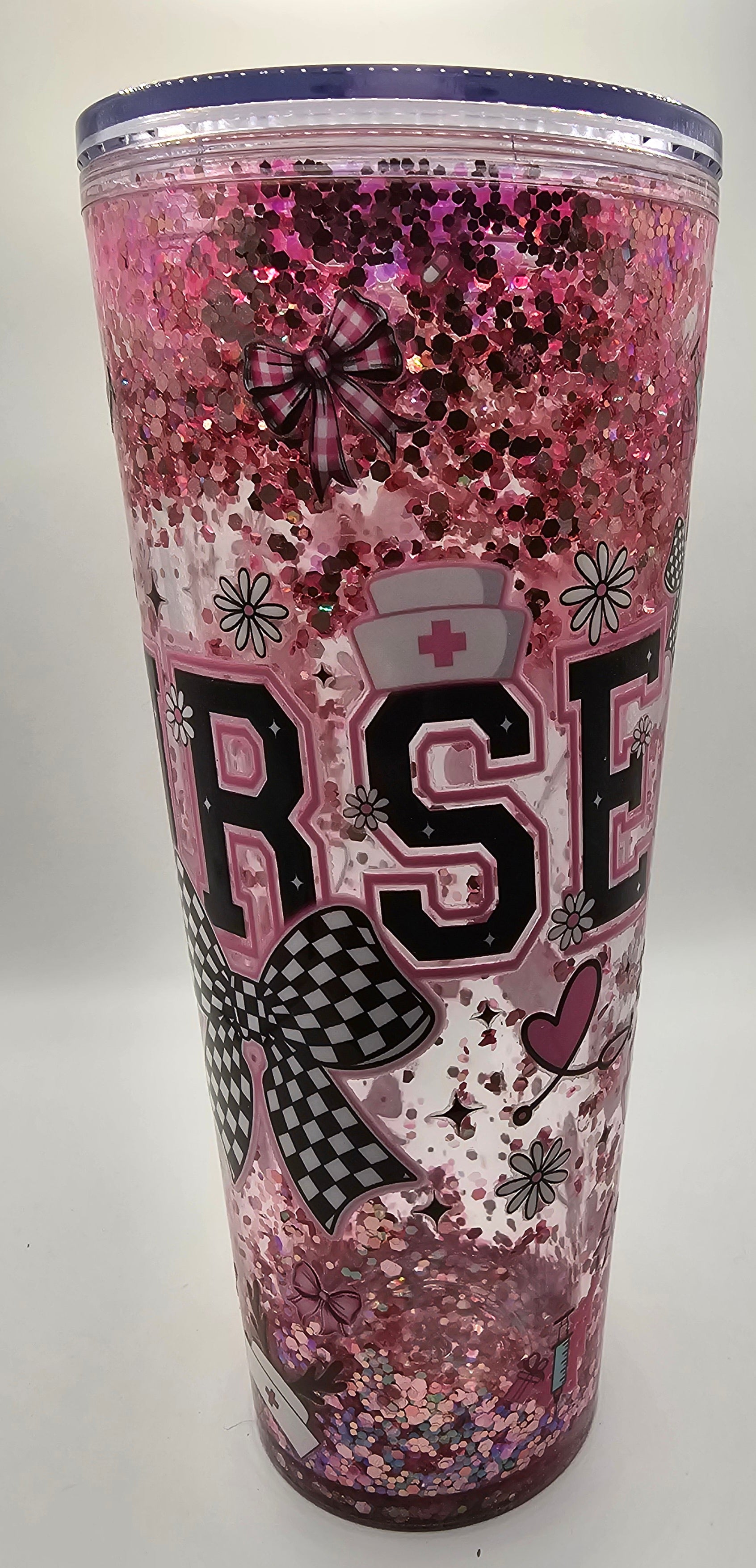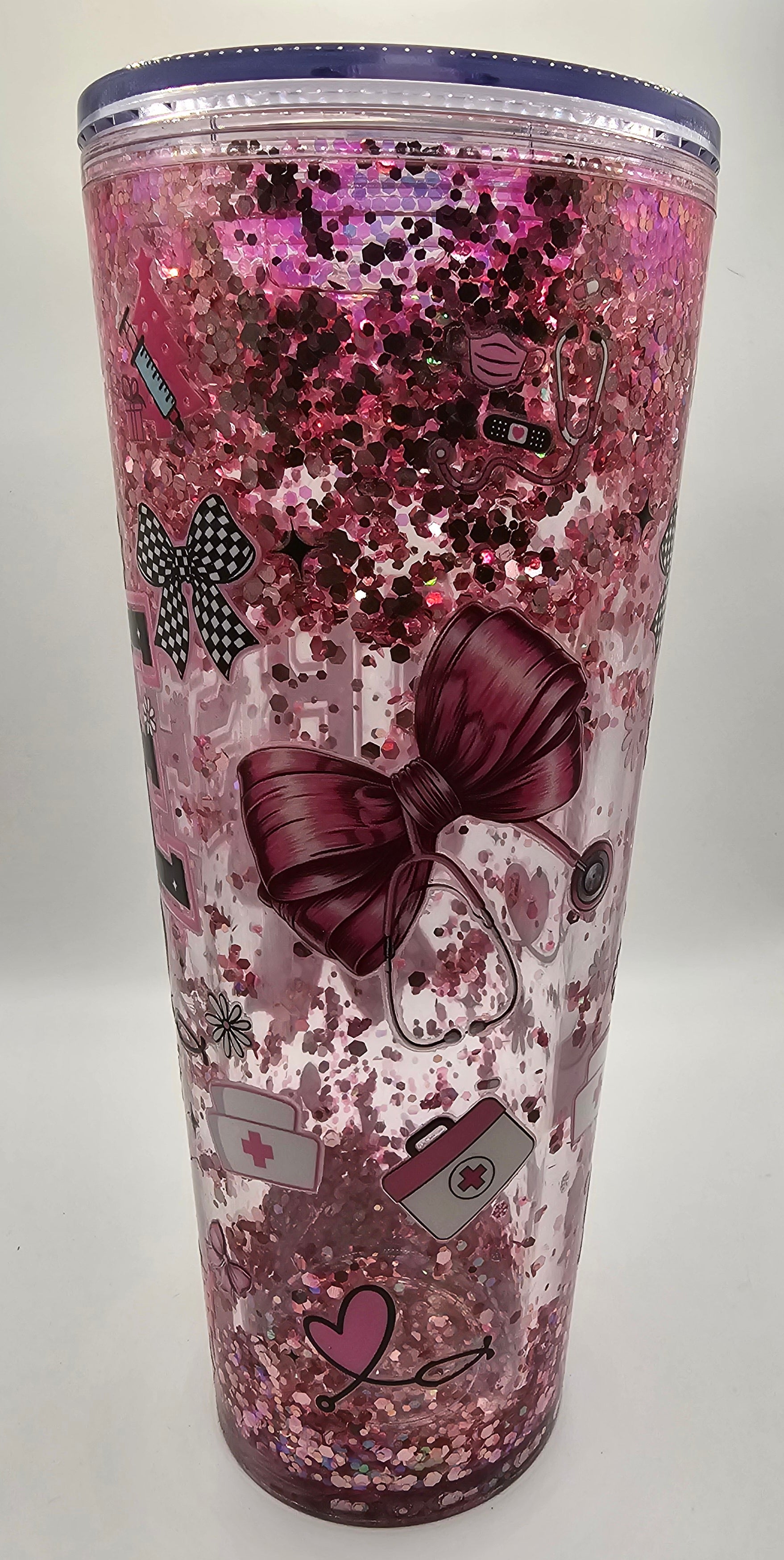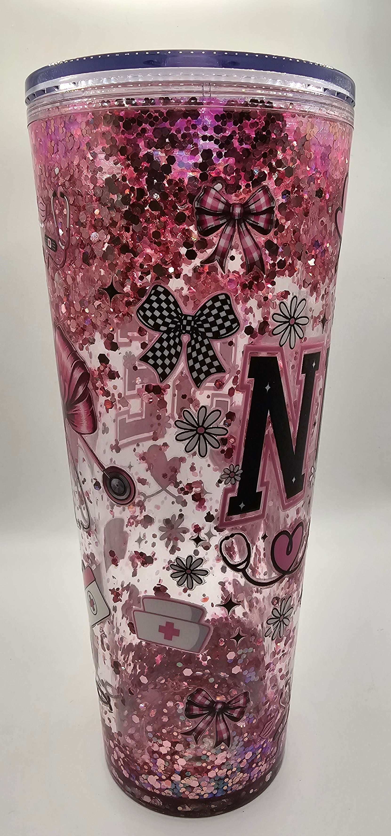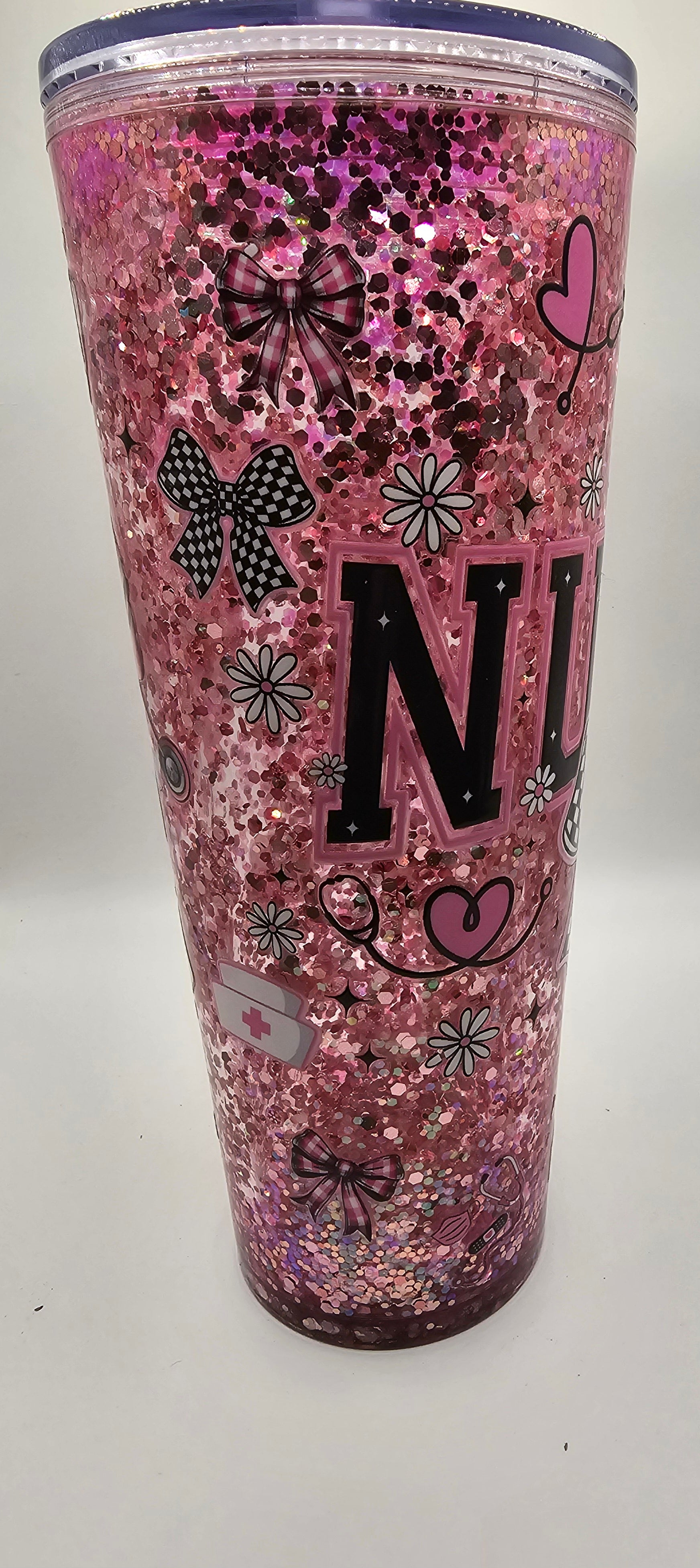 24 oz snowglobe with Pink glitter