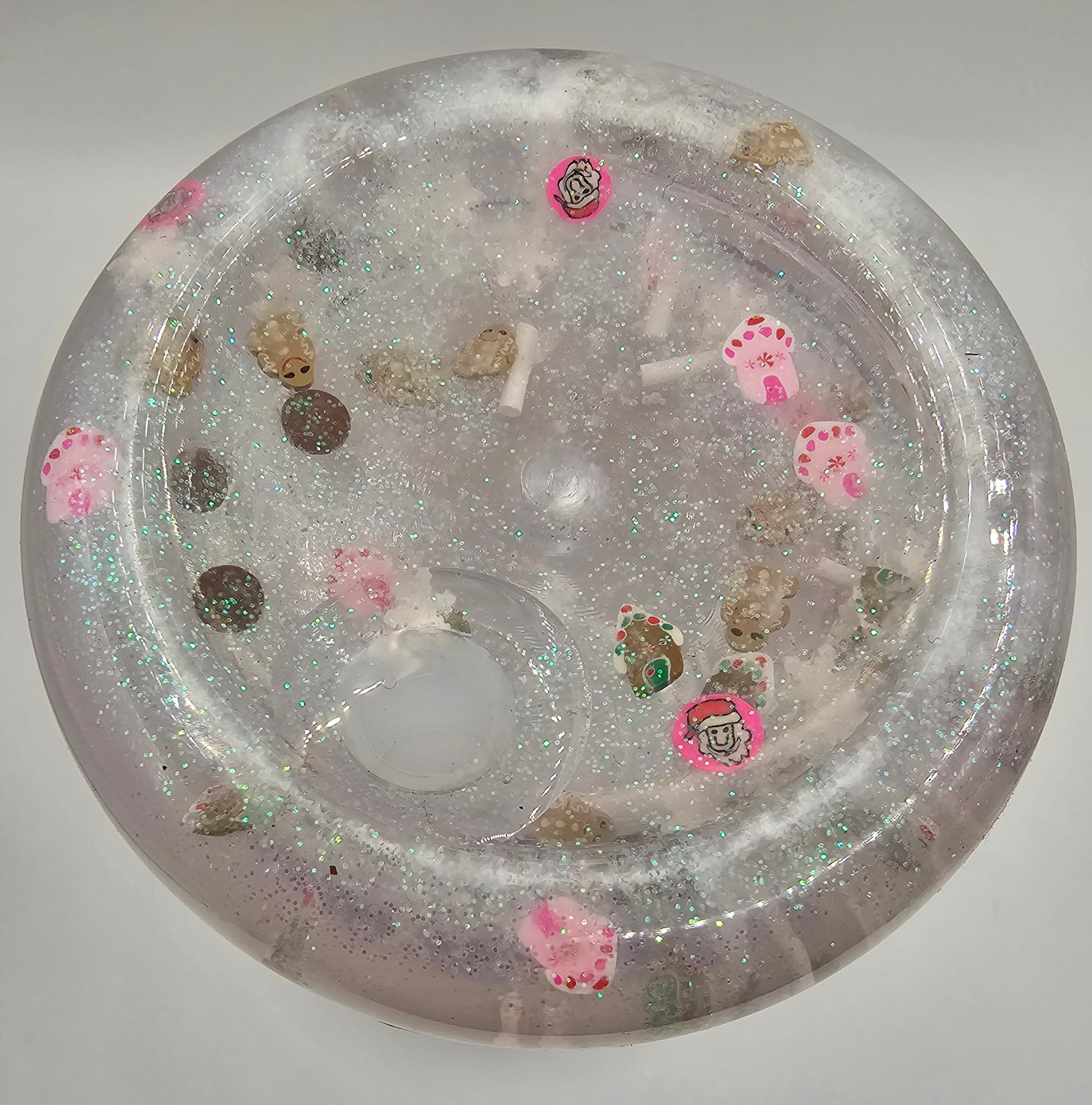 16oz snowglobe with glitter and clay pieces